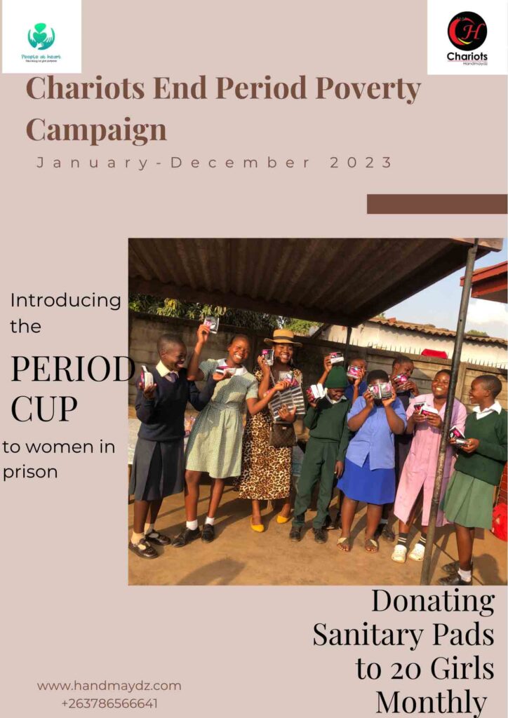 Our campaign to end period poverty is on track. In our fight against period poverty, Chariots has been donating pads to 20 girls at Lord Orphan Care Orphanage in Kambuzuma Zimbabwe every month. Our campaign is running from January through December.